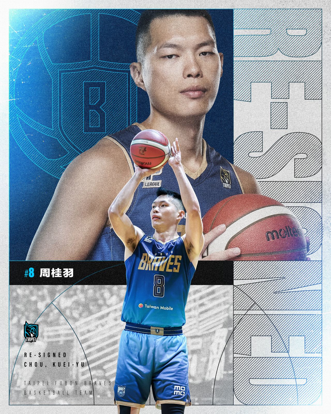 臺北富邦勇士繼老將林志傑、年輕球員洪楷傑續約後,今日正式宣布以複數年合約與球員周桂羽完成續約,將持續為新球季備戰!