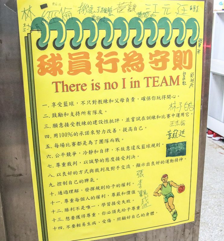 貼在球場外的球員守則,上面是球員的簽名以示遵守。圖片來源:楊智伃