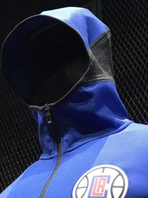 連帽部分使用特殊的網狀材質,讓球員熱身能更方便溝通。圖片來源:籃球筆記