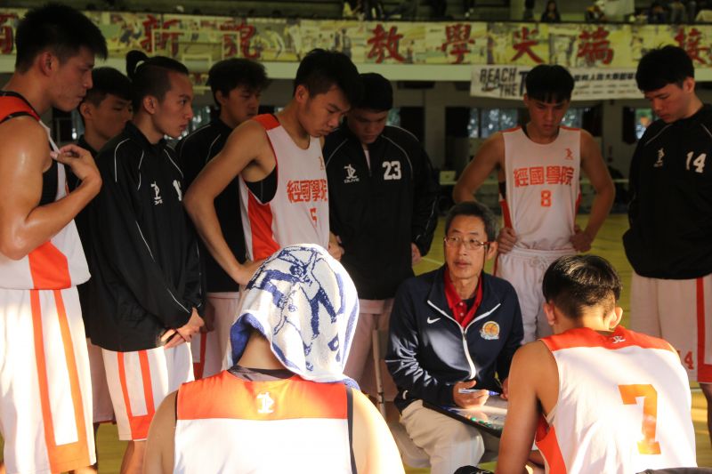 經國學院教練提醒球員儘管落後也要加強防守,不要鬆懈。 圖片來源:籃球筆記