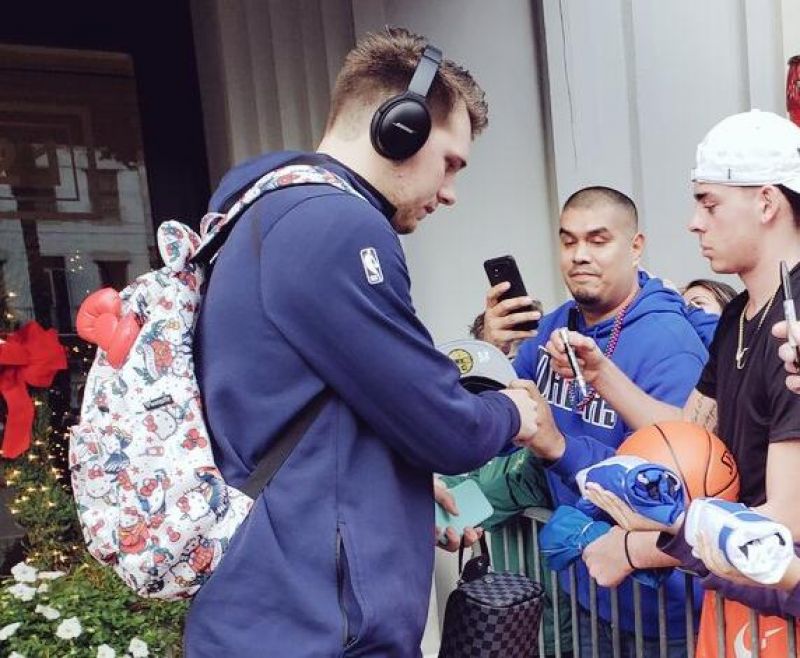 是隊友讓Doncic背Hello Kitty背包的?Doncic沒有回答,他一直在笑。