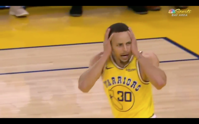 Steph's reaction after he dunked pic.twitter.com/eStKySUQjU