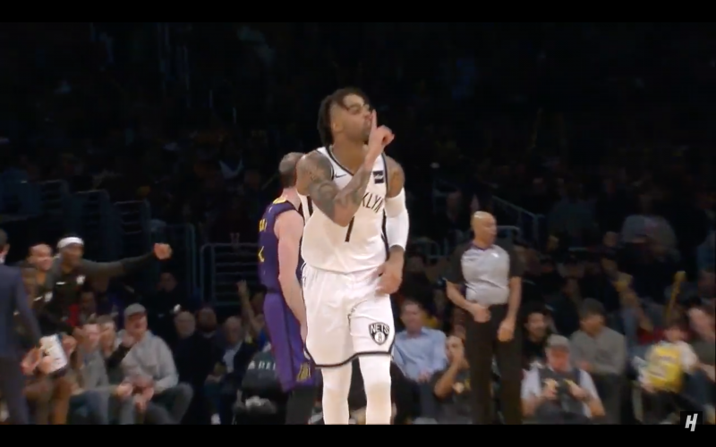Russell也成為了籃網隊史近25年首位連續3場單場得到至少20分10助攻的球員,在決勝節,D'Angelo Russell屢次在外線建功,用表現來回應湖人主場球迷噓聲,面對老東家,Russell打得更加起勁,末節比賽,場上的局面非常膠著,比分交替上升。打破僵局的是籃網的射手群,Dinwiddie和Carroll連續命中三分幫助籃網把比分擴大到了8分。隨後湖人曾一度將比分追到了3分,但隨後James在突破過程中滑倒在地,湖人沒能把握住扳平比分的機會。最終籃網以111-106的比分戰勝了湖人隊。此役之後,湖人正式告別季後賽,連續六個賽季無緣季後賽。