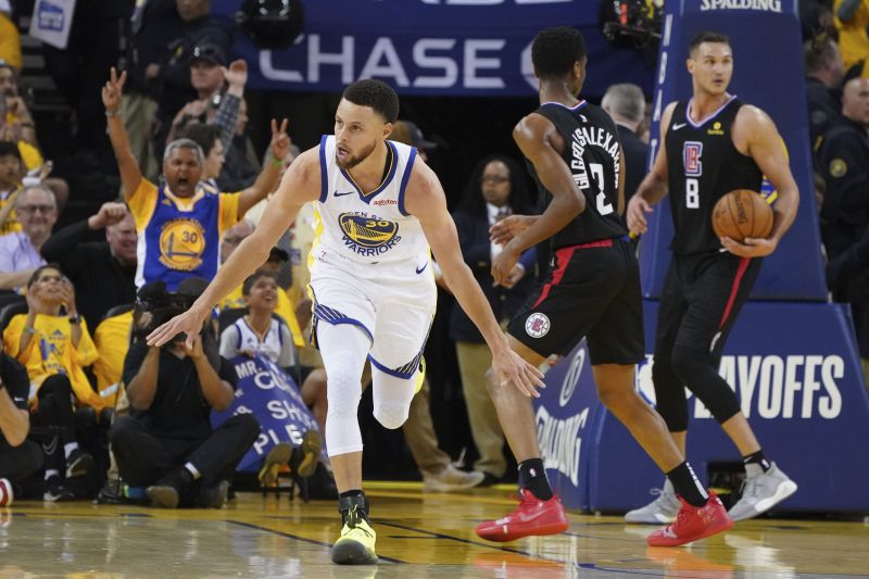勇士今日季後賽首場比賽在主場以121-104戰勝了快艇,本場比賽勇士後衛Stephen Curry命中了8記三分球,季後賽生涯三分球命中總數來到了386個,超越了Ray Allen的385個升至歷史第一位。