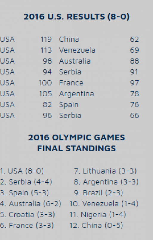 當年美國隊在分組賽對澳洲僅贏10分,對上塞爾維亞甚至血戰到最後一刻才94-91三分險勝對手,接著對法國也是同樣在驚滔駭浪下以三分之差拿下勝利,在淘汰賽遇到大魔王西班牙也是打得很驚險,只以82-76結束比賽,最後金牌賽雖然成功以96-66痛宰塞爾維亞奪金,但整個里約奧運籃球的過程裡,美國隊並非一帆風順,對手各各都不懷好意,極力渴望贏球想將其拉下馬,讓美國吞下敗仗,挫挫他們銳氣。