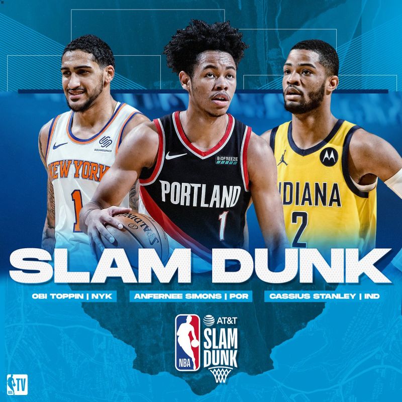 今天,NBA官方公佈了今年的全明星灌籃大賽最終參賽名單,分別是拓荒者球員Anfernee Simons、尼克球員Obi Toppin以及溜馬球員Cassius Stanley。