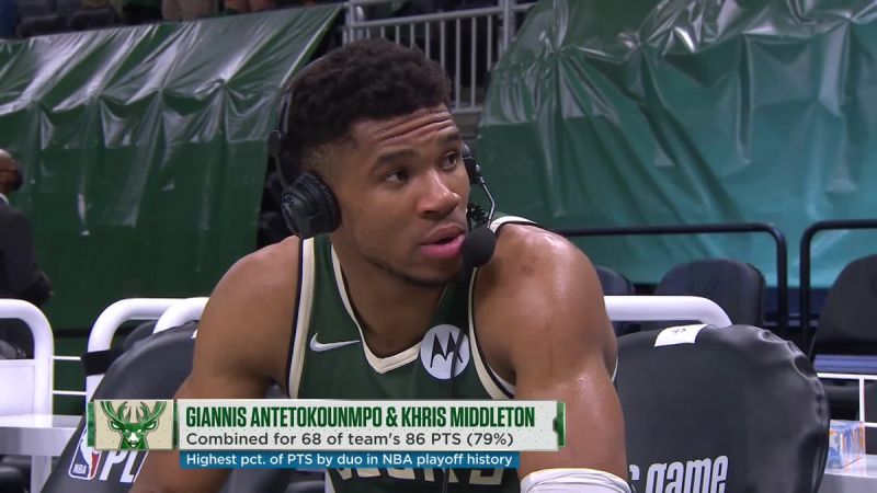 公鹿數據:Giannis Antetokounmpo 33分14籃板;Khris Middleton 35分15籃板;Jrue Holiday 9分5助攻。