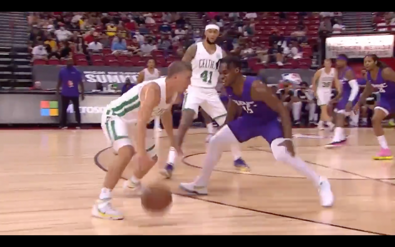其中曾在業餘聯賽砍下92分的Payton Pritchard在本場一次攻防遭NCAA冠軍大鎖Davion Mitchell 封鎖,最後導致進攻24秒違例。