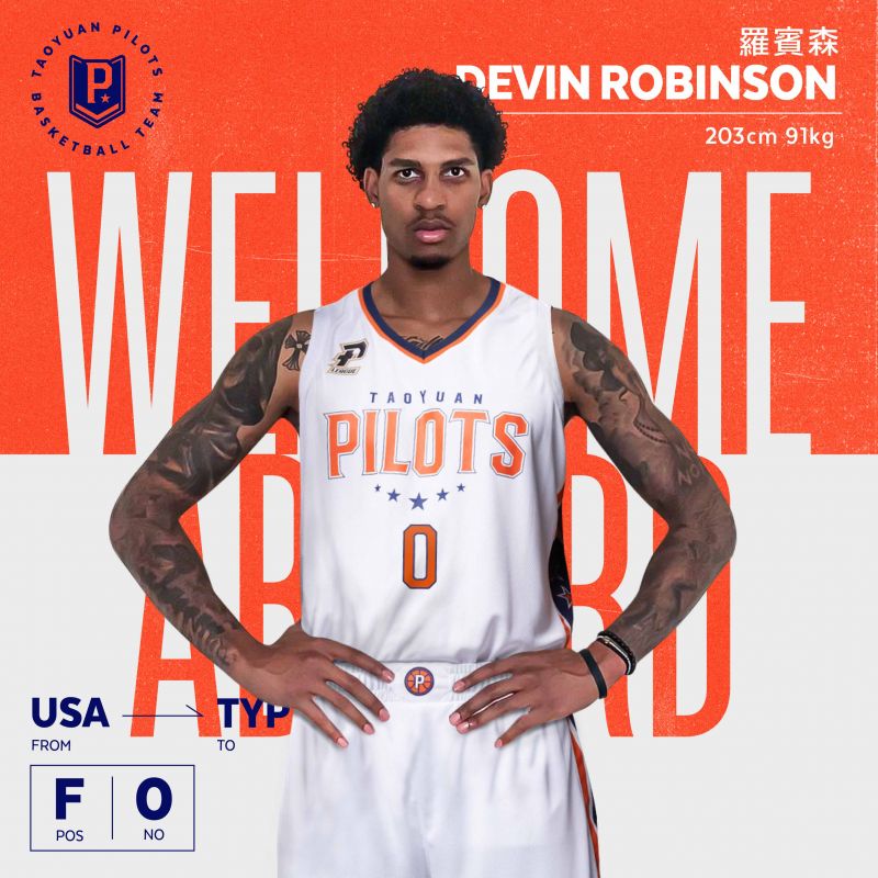桃園領航猿第三名外援戰力於今日(11/10)底定,宣布簽下前鋒羅賓森(Devin Robinson),其優異的身體素質,具備良好的爆發跳躍力,能守衛禁區爭搶籃板外,良好速度更能成為防守抄截的一大助力。