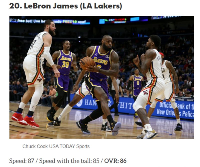 LeBron James以86的速度綜合評分排名第十。圖/截自HoopsHype官網