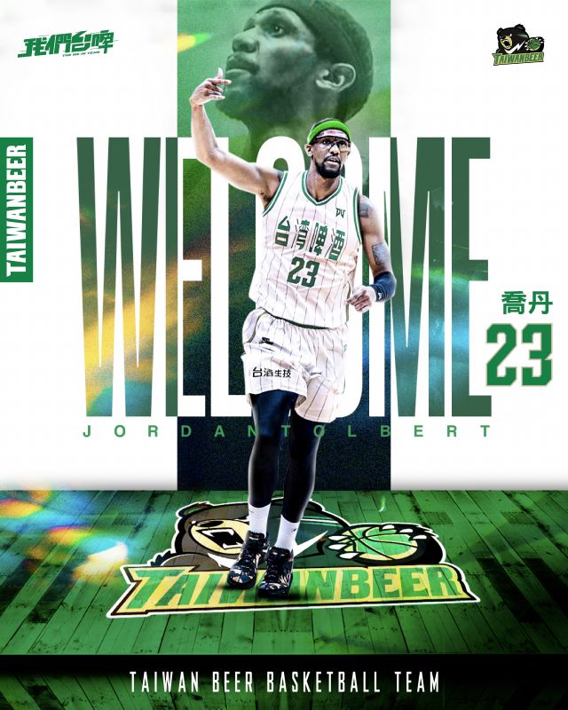 台灣啤酒籃球隊於今(8)日宣布前桃園璞園領航猿洋將喬丹(Jordan Tolbert)正式加入,選擇背號為23號,並已於昨日抵台,期望為上屆拿下亞軍的台啤帶來強悍的禁區戰力,幫助球隊重返榮耀。