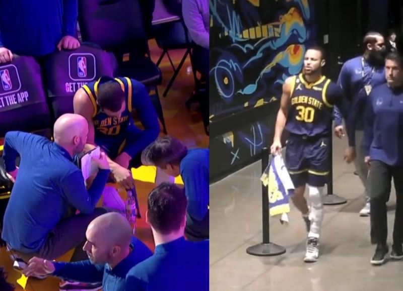 在今日勇士與獨行俠的比賽中,獨行俠球員McKinley Wright IV在切入時,不慎撞到Curry的左膝,隨後Curry便一跛一跛的走回場上,在板凳上評估傷勢後,目前已返回休息室治療。
