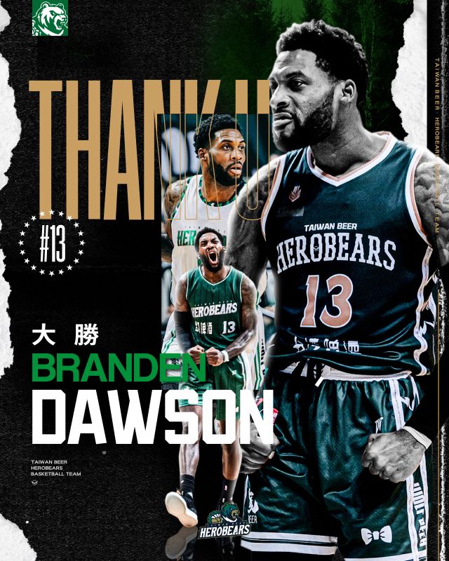 台灣啤酒英熊職業籃球隊於今(4)日宣布與陣中洋將大勝(Branden Dawson)解除合約。大勝於昨日向球團提出離隊申請,球團決定尊重大勝意願並給予最深的祝福。