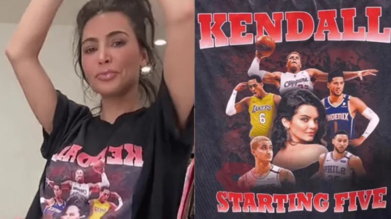 Kim Kardashian wears T-shirt of sister Kendall Jenner surrounded by five of her NBA-playing ex-boyfriends pic.twitter.com/aRYRVbrydj