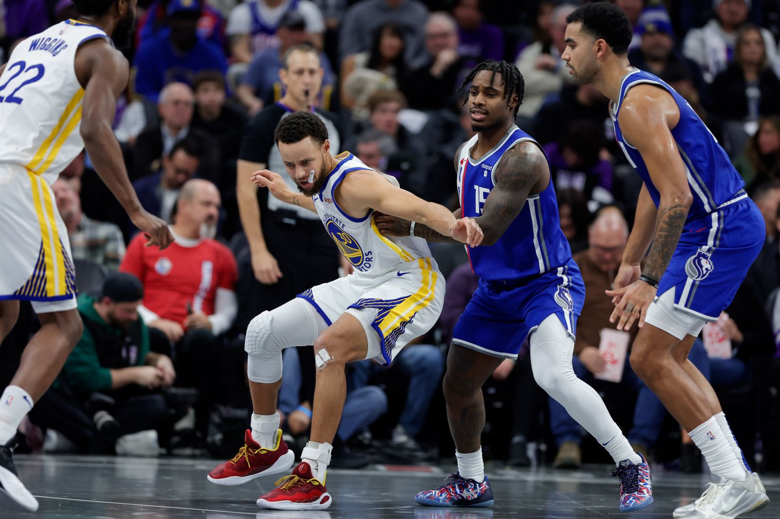雙方在比賽末段戰成114-119,國王在幾波進攻雖有創造出空檔但未能命中,Fox隨後兩罰一中將落後追近至4分,Curry接下來製造犯規隨後兩罰全中,比分來到了121-115。
