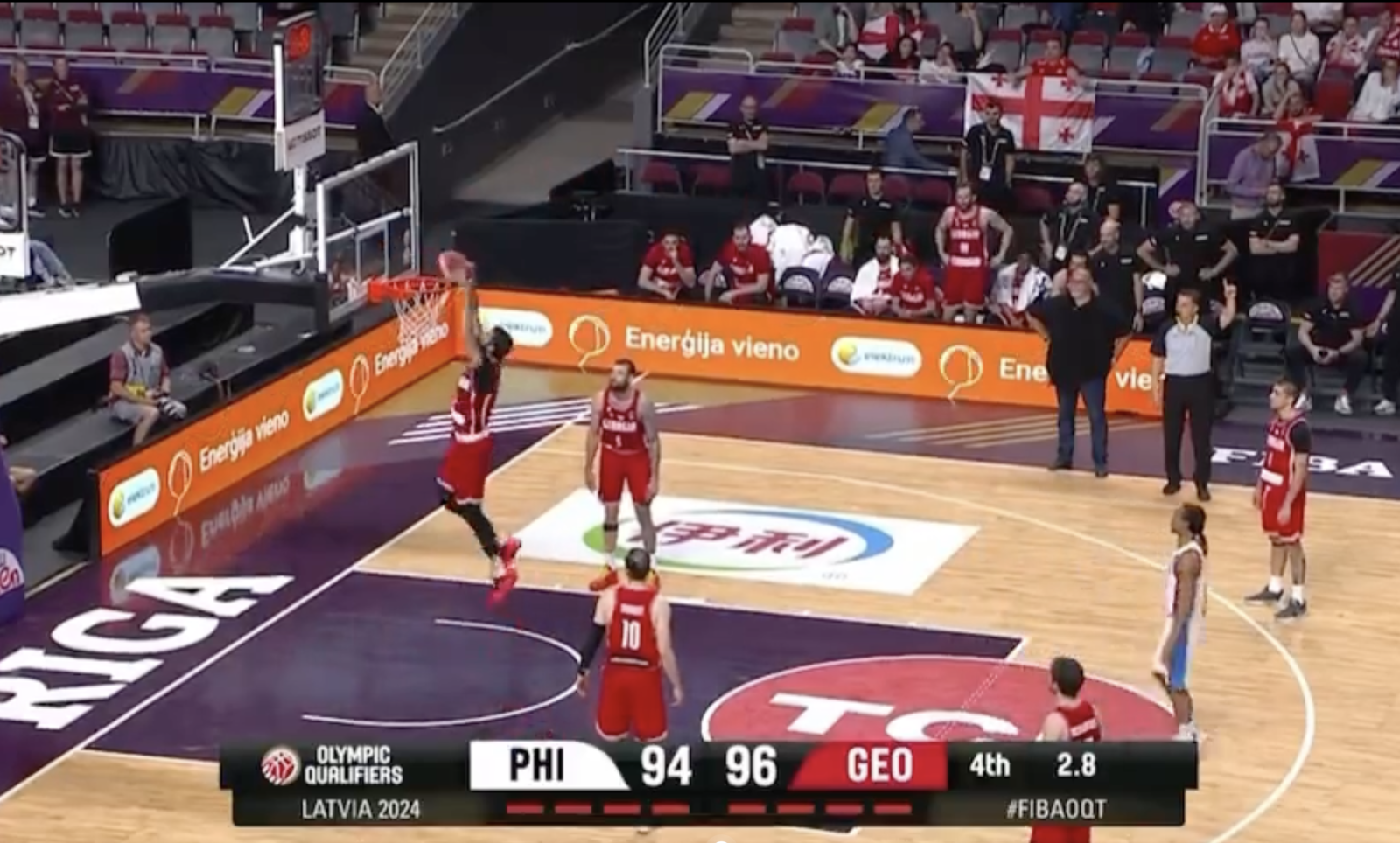 奧運資格賽拉脫維亞組昨天的比賽中,喬治亞必須贏菲律賓19分才可以繼續前進四強爭奪奧運門票,比賽到了尾聲,喬治亞浪費上半場取得過的領先優勢,最後被菲律賓追了回來,雖然菲律賓沒有贏下比賽,兩分差敗給對手,但仍然前進四強。