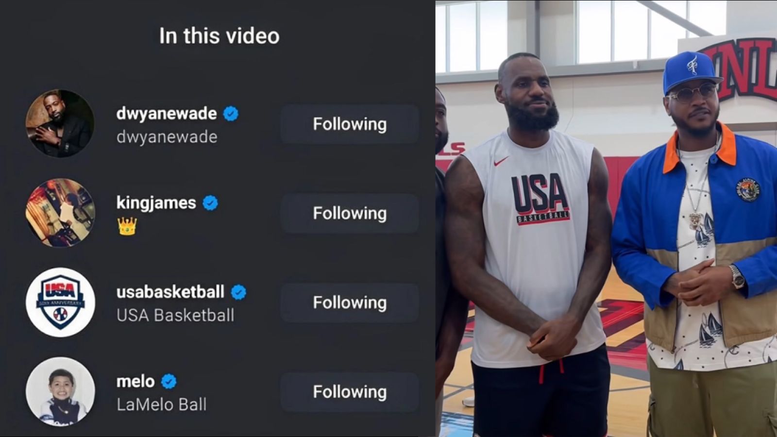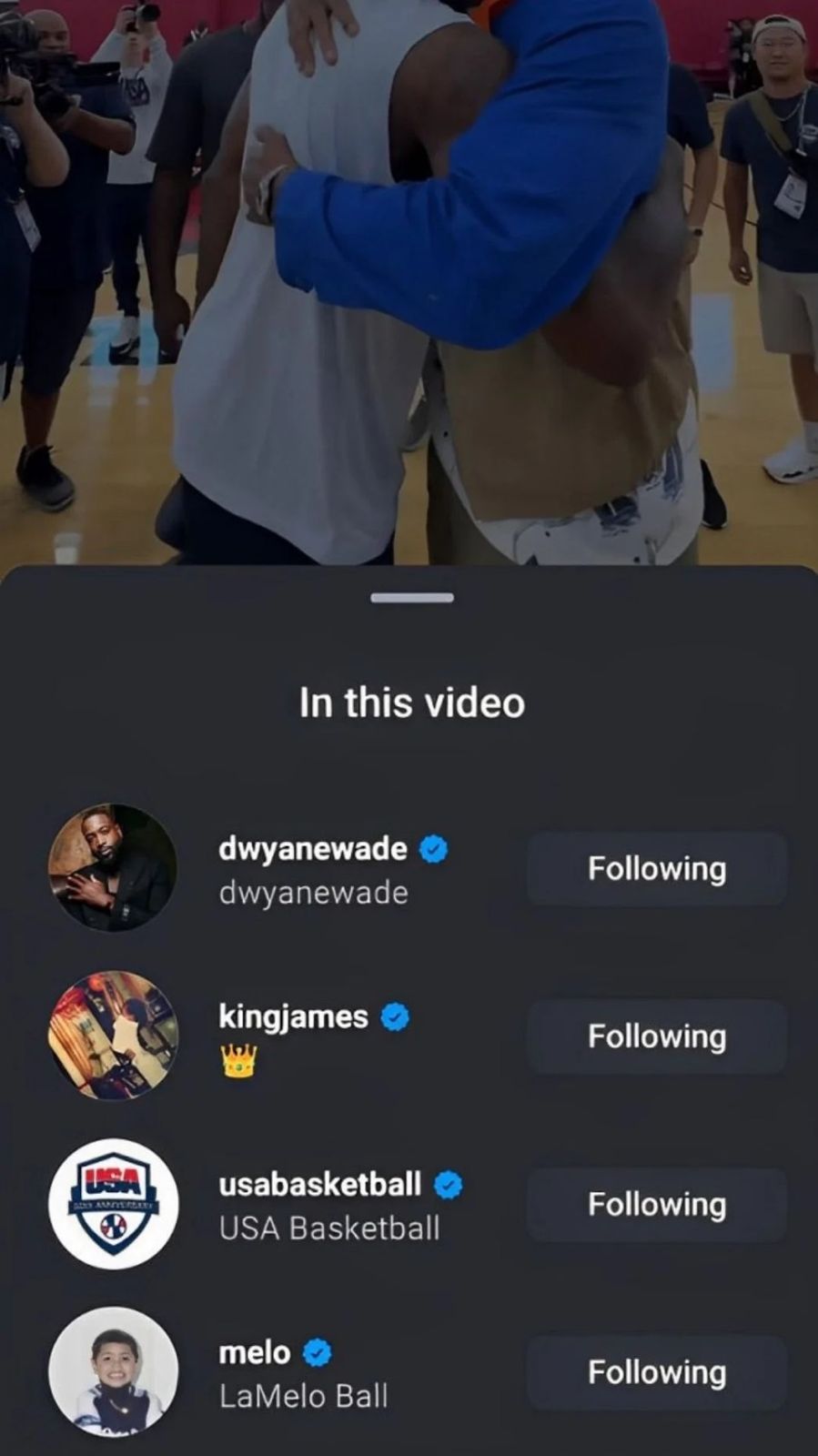 近期美國男籃奧運代表隊持續集訓中,而過往美國隊老班底Dwayne Wade、Carmelo Anthony也到場探望同在現場的LeBron James,然而NBA官方帳號卻在貼文標記上出現大烏龍。