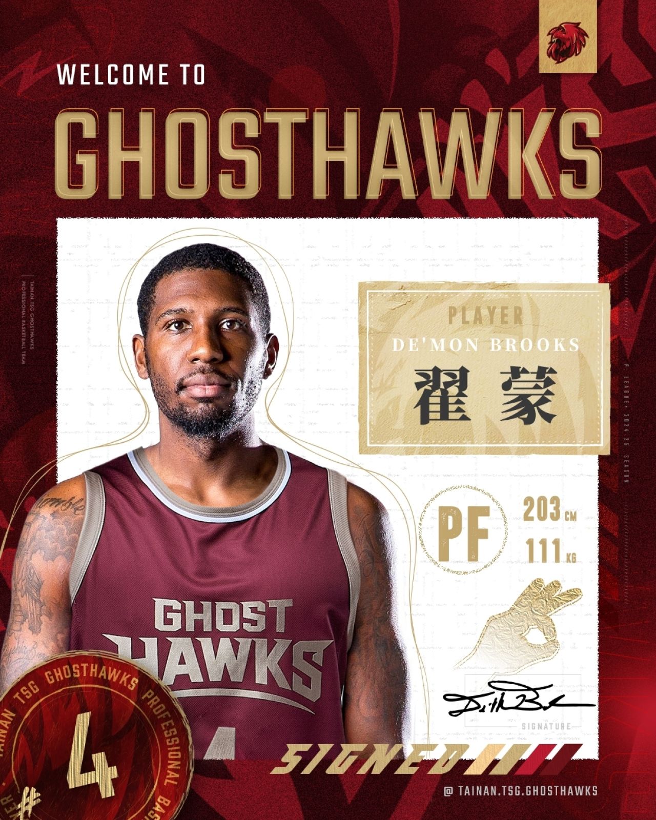 台鋼獵鷹今(6)日宣佈203公分美國籍大前鋒翟蒙(De'Mon Brooks)加盟,翟蒙畢業於NCAA一級學校戴維森學院(Davidson College),大二和大四賽季分別以場均16.6分、6.2籃板、54.5%投籃命中率與場均20.5分、7.6籃板、65%投籃命中率的優異表現,兩度被教練評選為南方協會(Southern Conference)年度最佳球員,同時也被美聯社(Associated Press)選入全美最佳陣容。