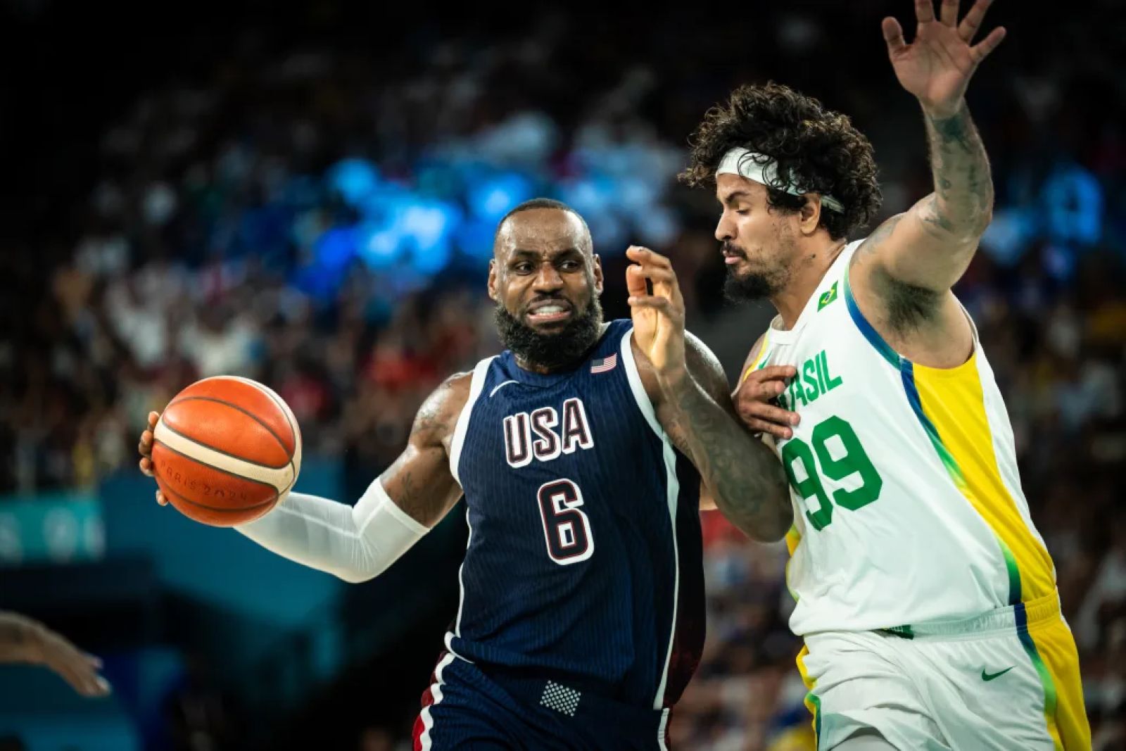美國與巴西在今日展開了八強戰,開賽後巴西先是靠著Gui Santos快攻拿下兩分,而美國這邊Devin Booker也迅速的拿下分數。美國隨後在LeBron James的進攻串連下持續將領先分差擴大,首節美國以33-21暫時領先巴西。