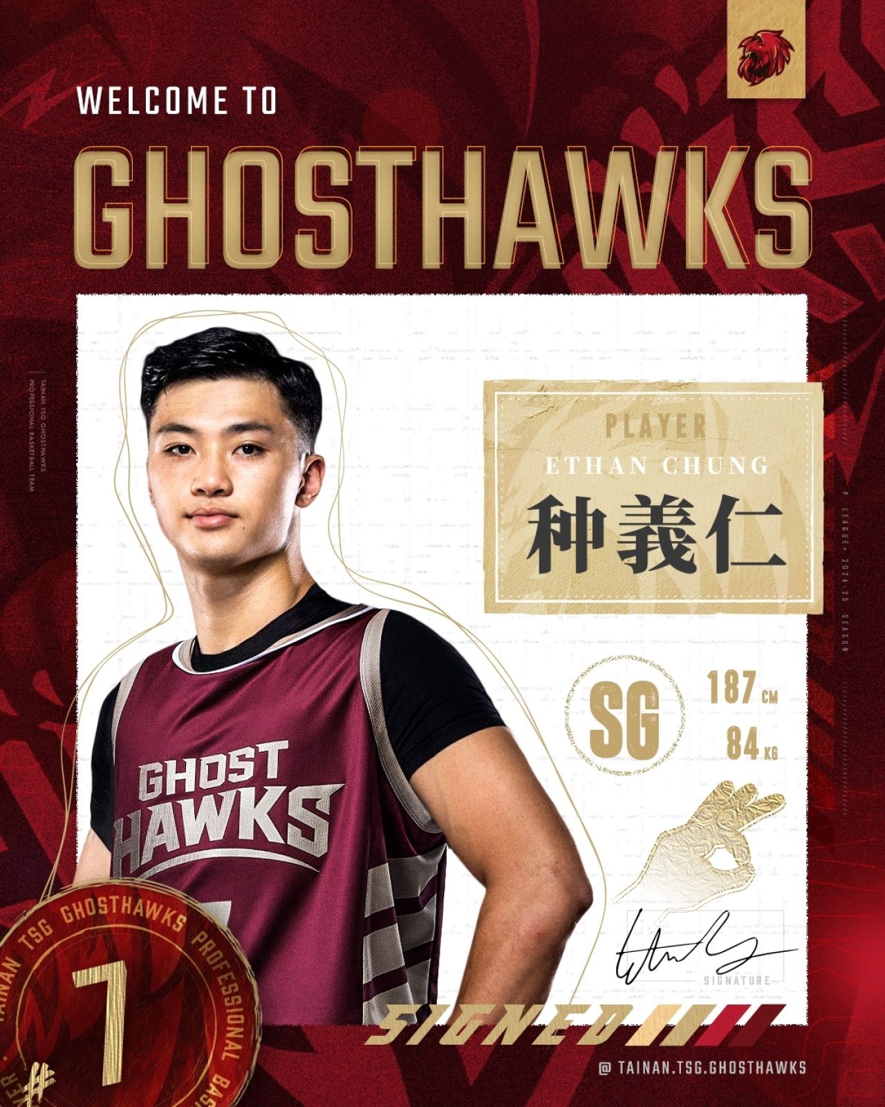 台鋼獵鷹今(14)日宣佈華裔球員种義仁(Ethan Chung)加盟,种義仁身高187公分,主打得分後衛,父親是台灣人,從小在美國長大,去年從太平洋大學(University of the Pacific)畢業,大四賽季他出賽25場,場均貢獻7.5分、3.4籃板和1.5助攻,三分球命中率達35%。