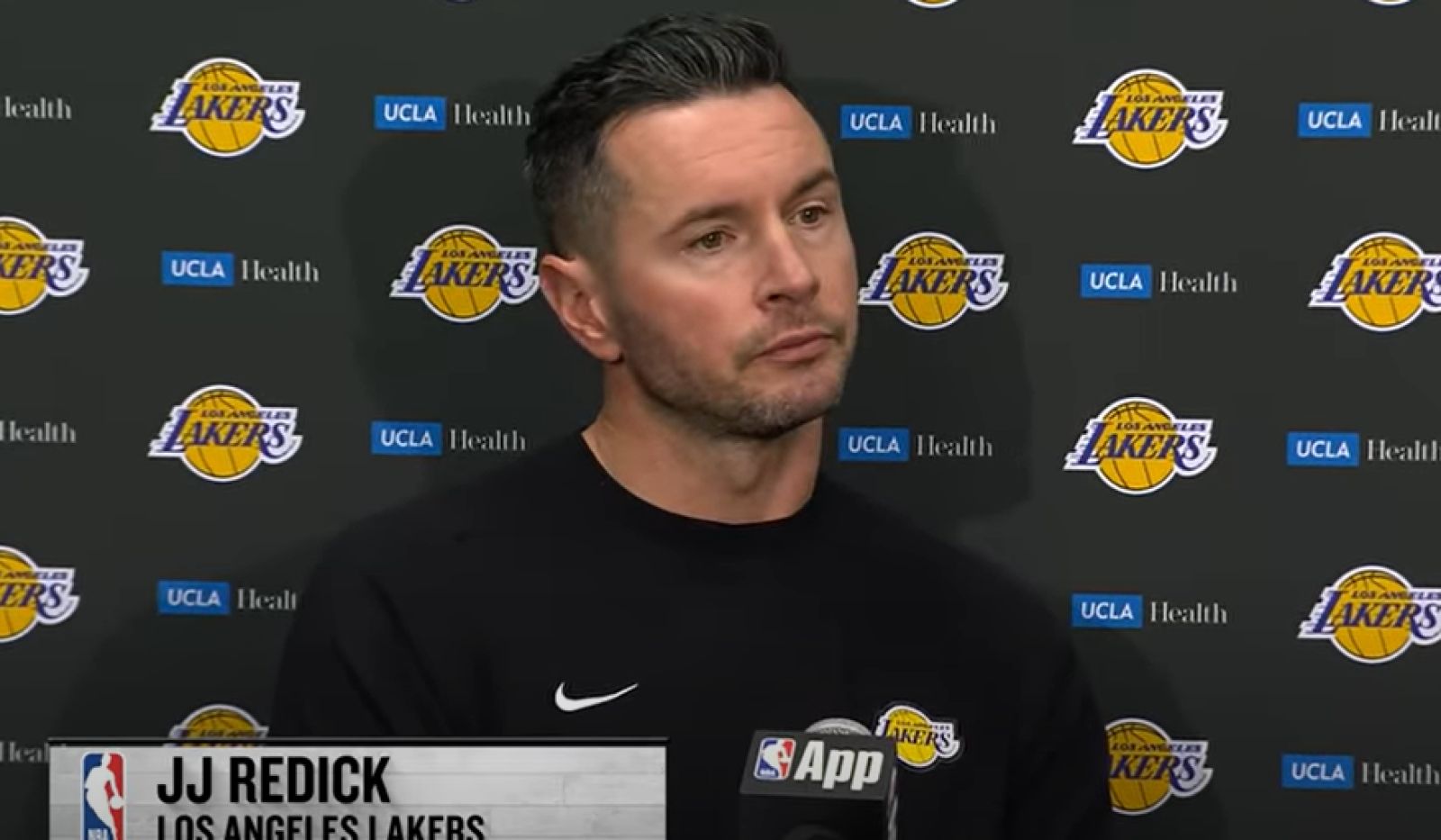 湖人總教練JJ Redick在記者會上接受採訪。圖/截自YT
