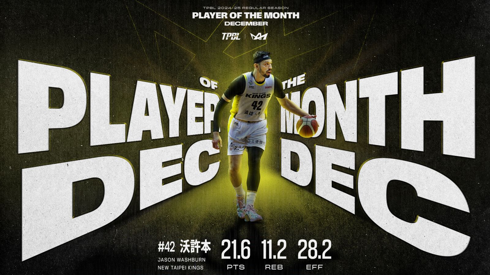 沃許本強勢的籃下對抗,並以不懈的拼勁和穩定的表現,帶領新北國王在12月取得四場勝利。這段期間,他場均能貢獻21.6分、11.2籃板、1.2阻攻和1抄截,並以效率值28.2位列所有外援中最高,顯示出其全能的場上表現。選票部分,獲媒體16張五分票與2124張球迷選票,並成功以總佔比40.3%擠下艾德的20.5%,拿下12月最佳外援獎項!