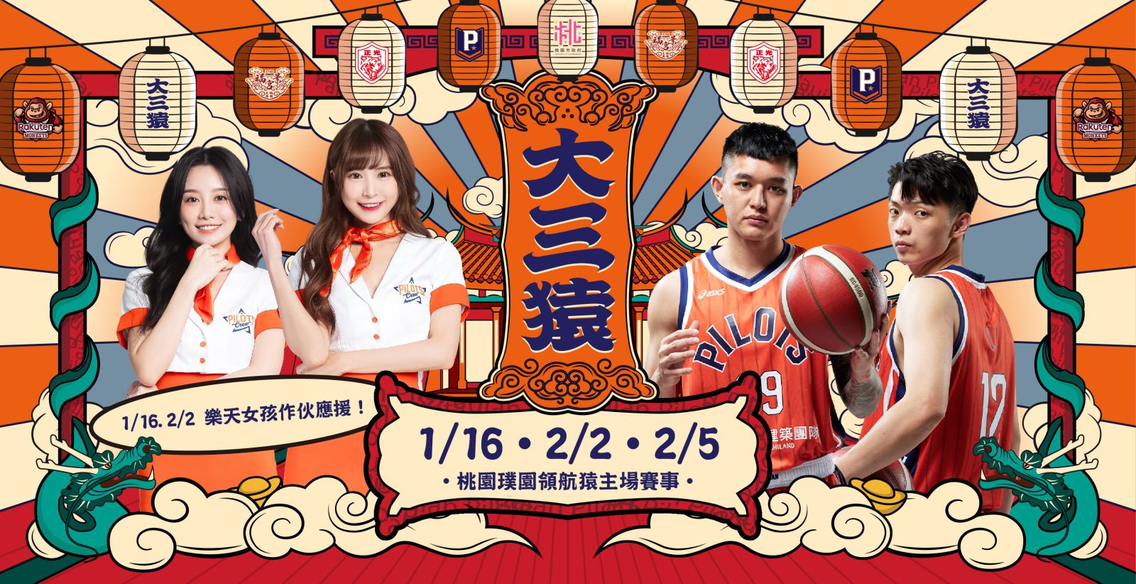 「大三猿」熱鬧慶典第二彈!邀請好夥伴樂天桃猿啦啦隊「Rakuten Girls樂天女孩」一同參戰應猿!高人氣陣容首度現身桃園巨蛋主場與球迷一起互動,將帶來充滿活力開場表演以及節間互動應援,1/16由琳妲、宋宋、穎樂打頭陣出征,2/2再推出梔梔、儷軒、Kira為飛行部隊助陣,此外,賽前於環廊活動攤位特別推出「大三猿吧台」女孩擊拳會活動,與Pilots Crew空姐啦啦隊再度跨界合作,參與活動的橙客不僅能與女孩擊拳應援,還能獲得女孩親自手繪Emoji爆米花,期待橙客來到桃園巨蛋一起「團猿」,共享熱血的籃球時光!