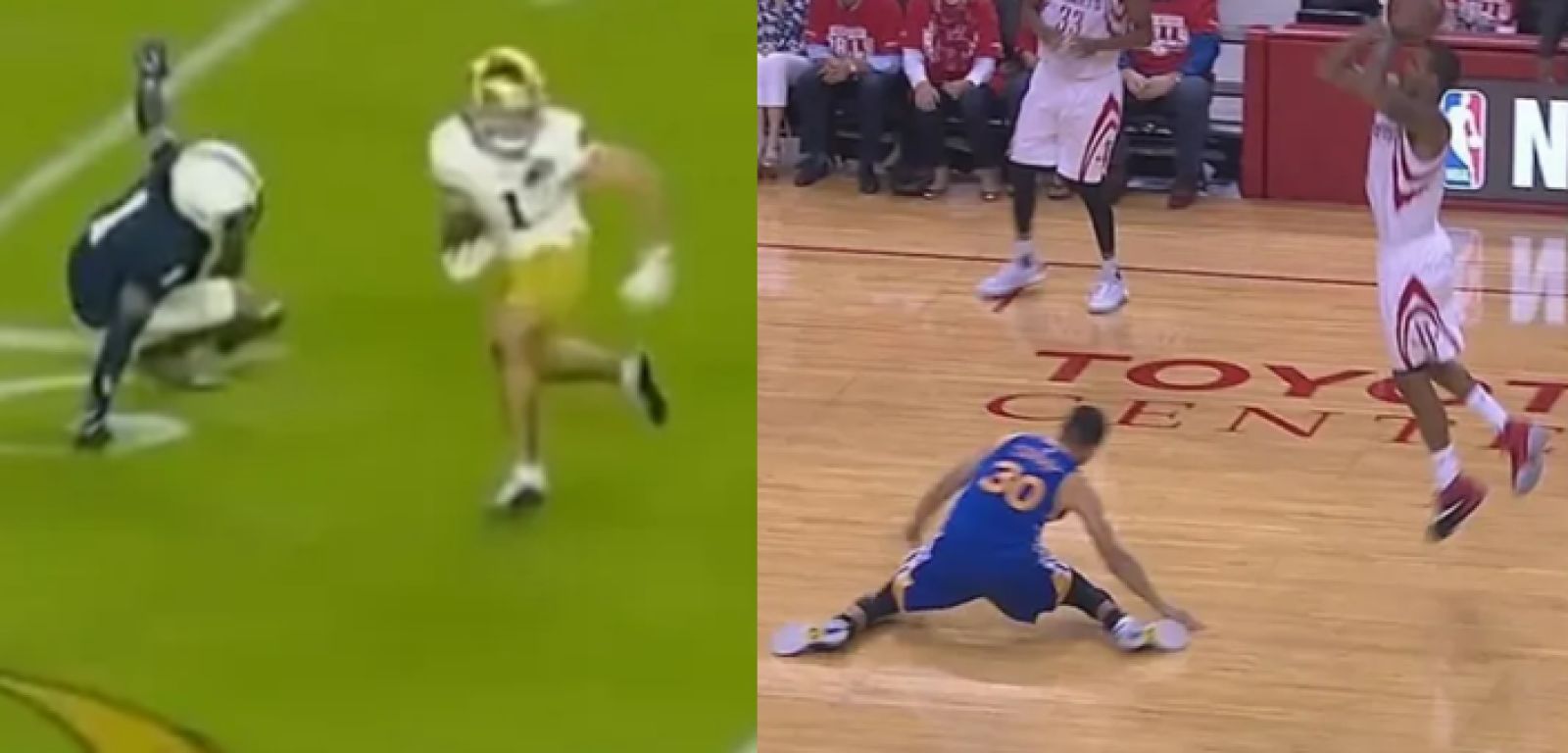 近期美式足球NCAA賽事中,就讀於賓州州立大學的Jaden Greathouse在一次進攻中將對手晃倒。而媒體《Bleacher Report》則將此畫面與先前Stephen Curry對陣火箭的比賽中滑倒畫面做對比,結果遭到Curry本人在貼文下方回覆。