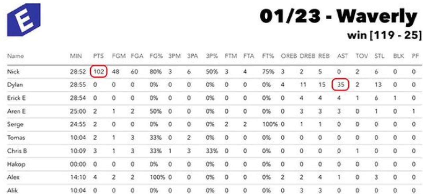 今日美國高中賽事創下了創紀錄的得分、助攻數據,就讀於Mesrobian的Nick Khatchikian、Dylan Khatchikian兄弟,在面對Waverly高中的比賽中,Nick Khatchikian攻下了破加州紀錄的102分、Dylan Khatchikian則是傳出平全國紀錄的35助攻。