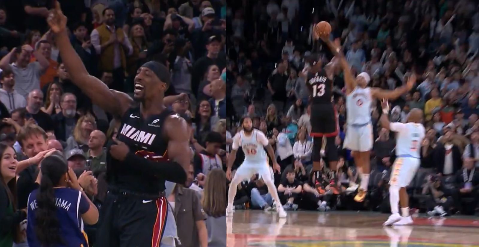今日熱火在客場迎戰馬刺的比賽中,手握最後一波球權的熱火,在末節最後時刻Bam Adebayo選擇持球切入,面對Keldon Johnson的防守下成功命中跳投,率隊以105-103擊敗馬刺。