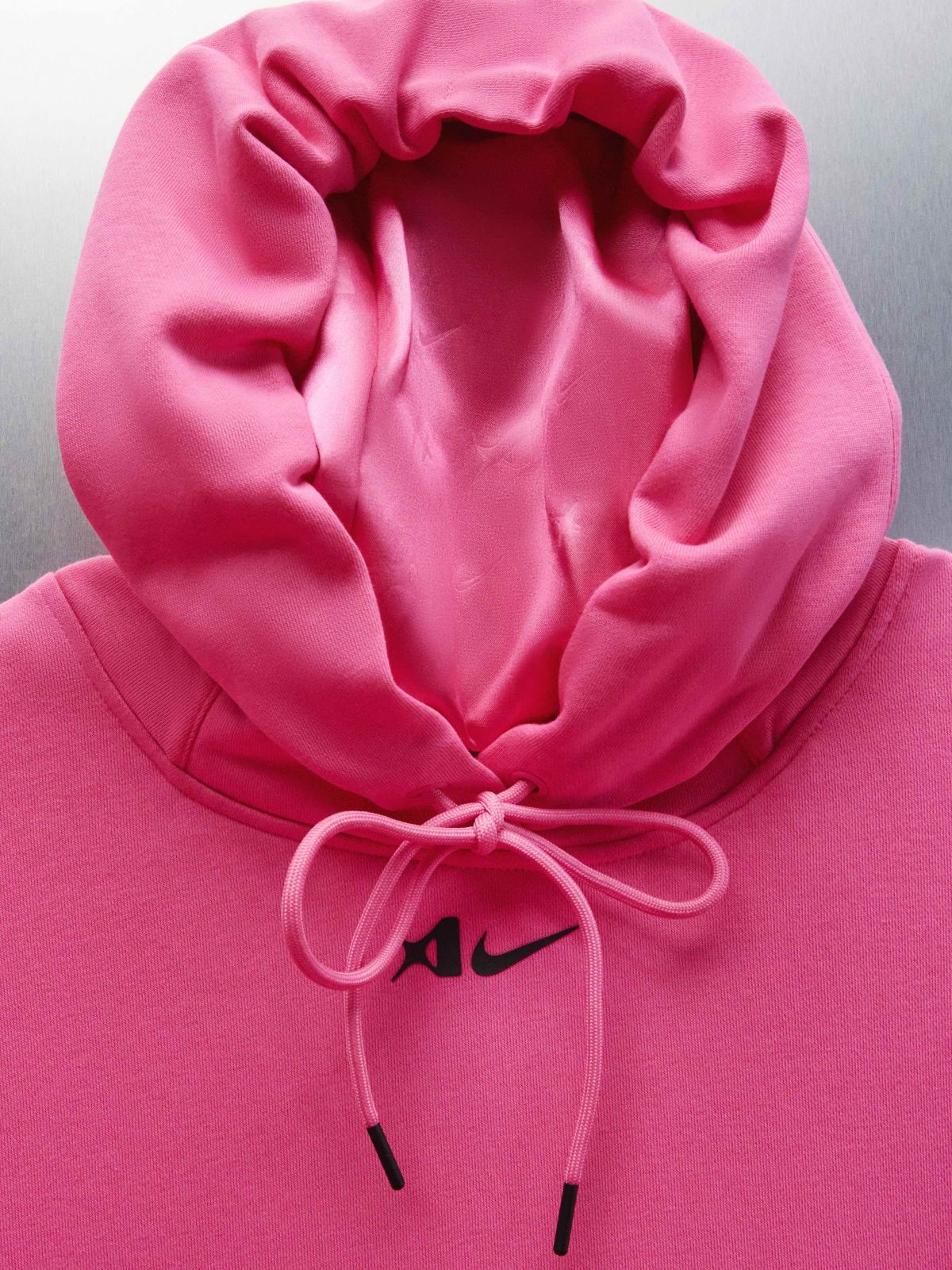 短版女子連帽上衣採用了緞面內襯的帽子設計,既能讓運動員的頭髮保持時刻有型,又增添了時尚感。金屬抽繩增添了精緻的高級感,同樣的金屬抽繩設計還運用到了緞面短褲上。短袖和長袖T-Shirt則作為A'ja Wilson大膽設計美感的入門體驗。