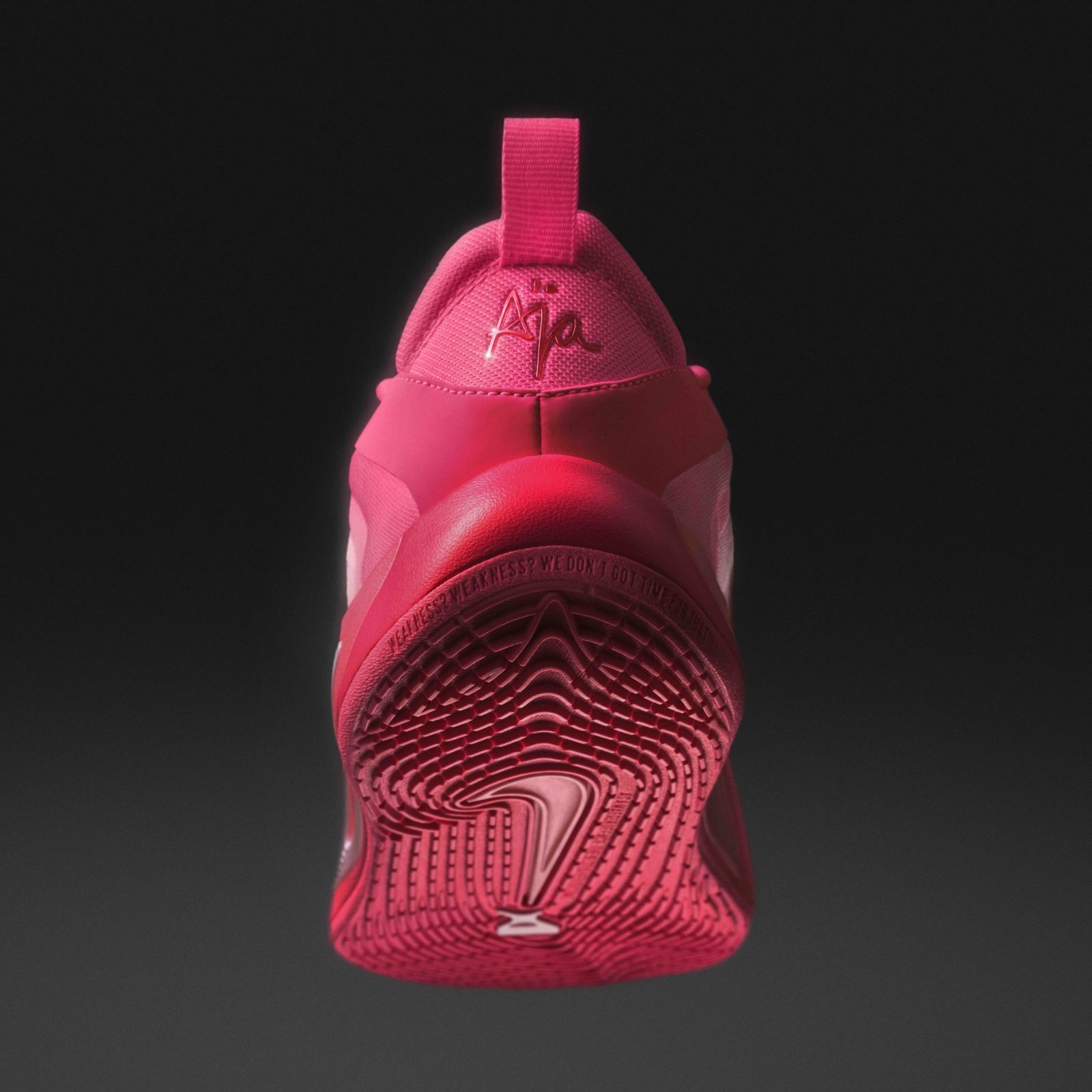 鞋舌內的塞爾提克符號分別代表「母親」和「父親」,是A'ja Wilson對父母的致敬,也再次強調了她家庭大於一切的信念。外底後跟處刻有她賽後採訪的金句,表達了A'ja Wilson指標性的堅韌精神:「軟弱,軟弱。我們沒有時間浪費在這上面。」