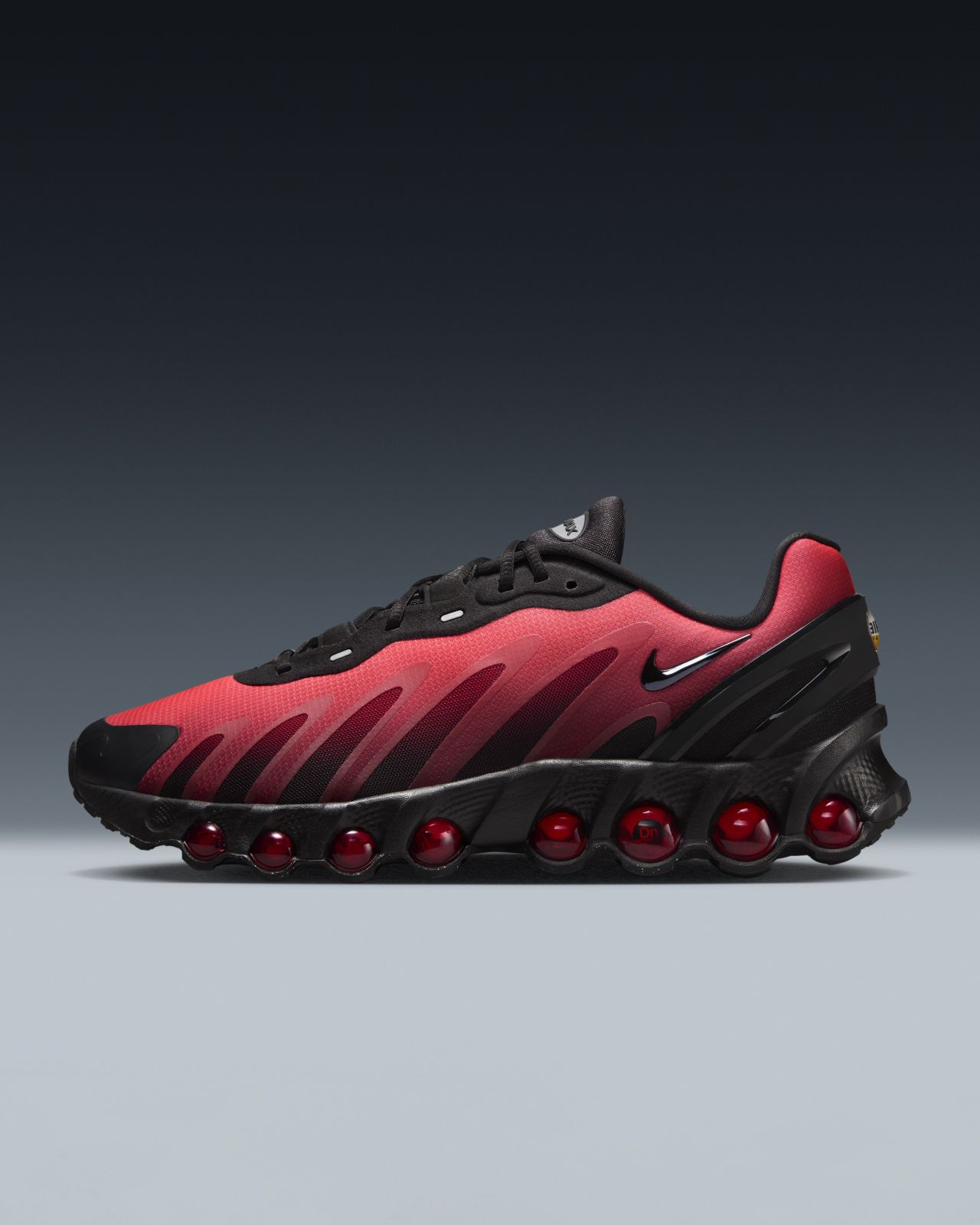 Air Max Dn8 透過兩個Air緩震氣墊、八根加壓管狀氣柱的結構帶來了貫穿全掌的持續流動加壓,實現創新升級,拓寬了Air技術的邊界。