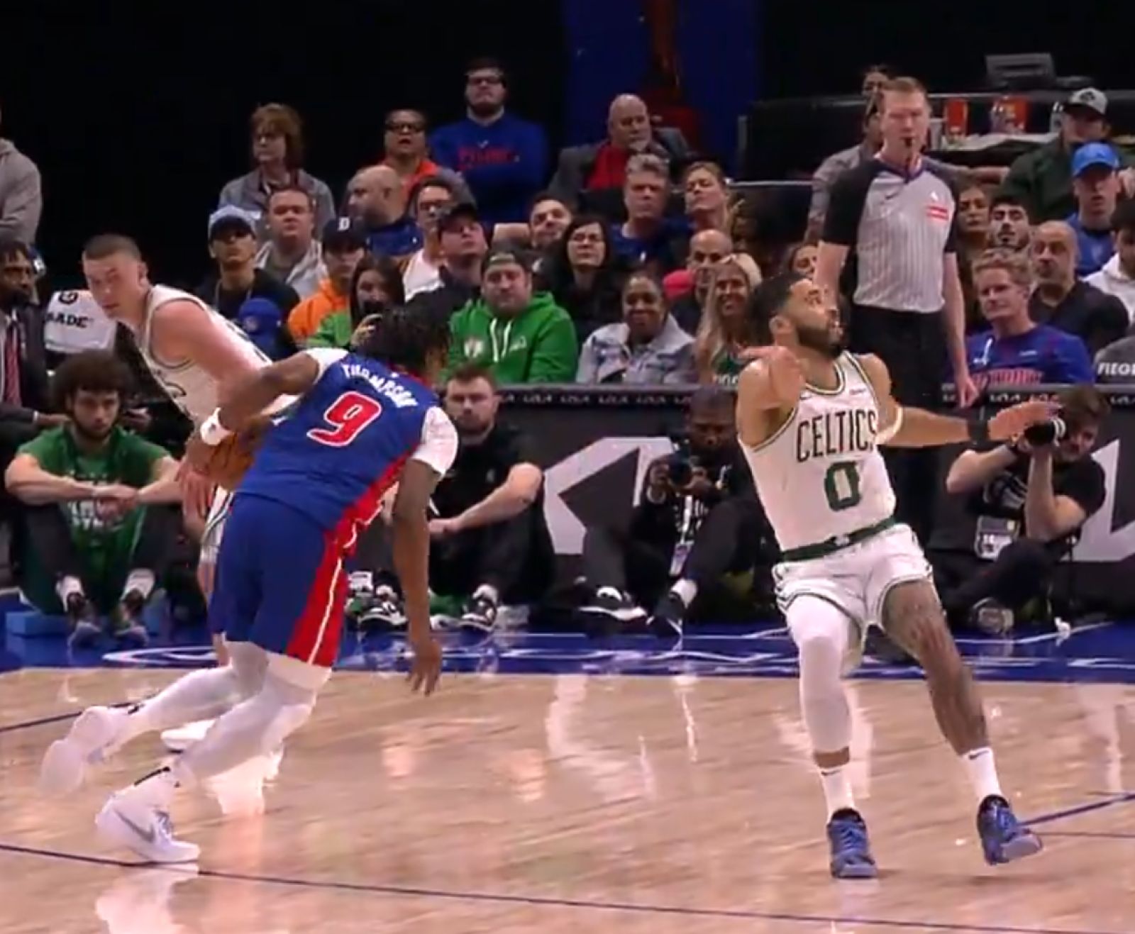 今日活塞對陣塞爾提克的比賽中,Ausar Thompson在一次進攻中差點將防守的Jayson Tatum晃倒,後續也透過切入分球找到跟進的Isaiah Stewart,順勢要到裁判的犯規。