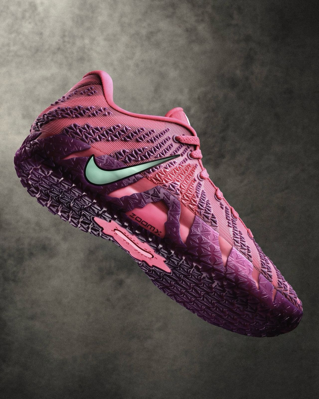 過去在Nike Ja 3的設計概念圖在網上曝光時,率先亮相的概念圖就是以粉紫色為基底的"Max Volume"配色,如今實鞋樣貌終於迎來曝光。