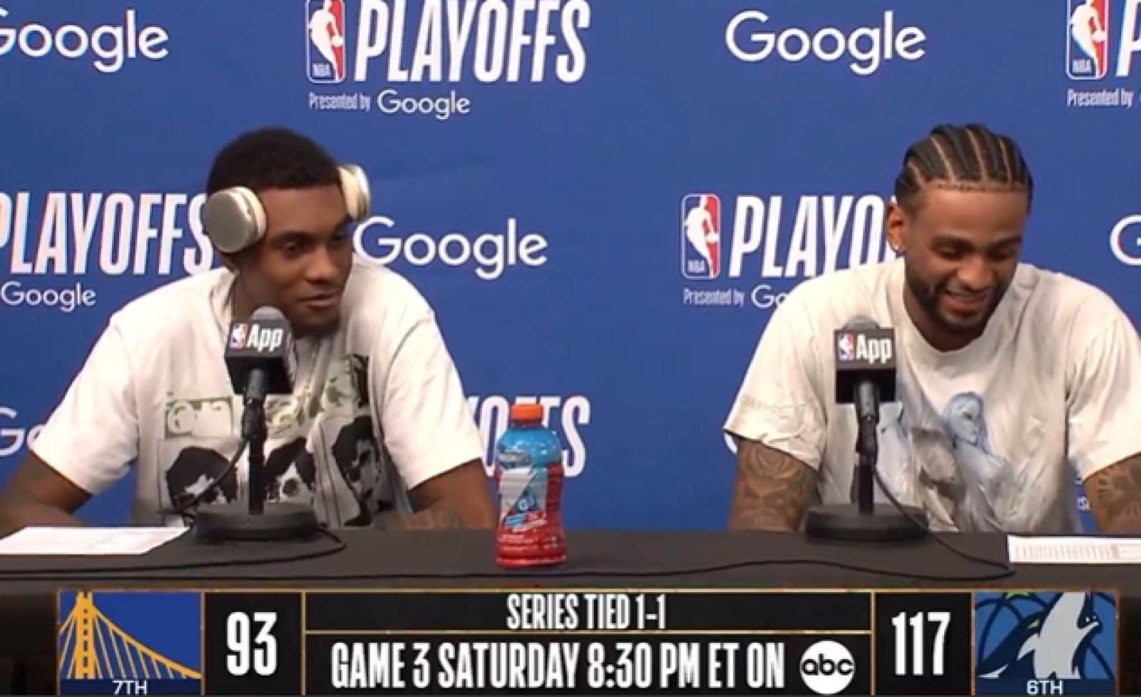 賽後Jaden McDaniels與Nickeil Alexander-Walker一起受訪。圖/截自推特