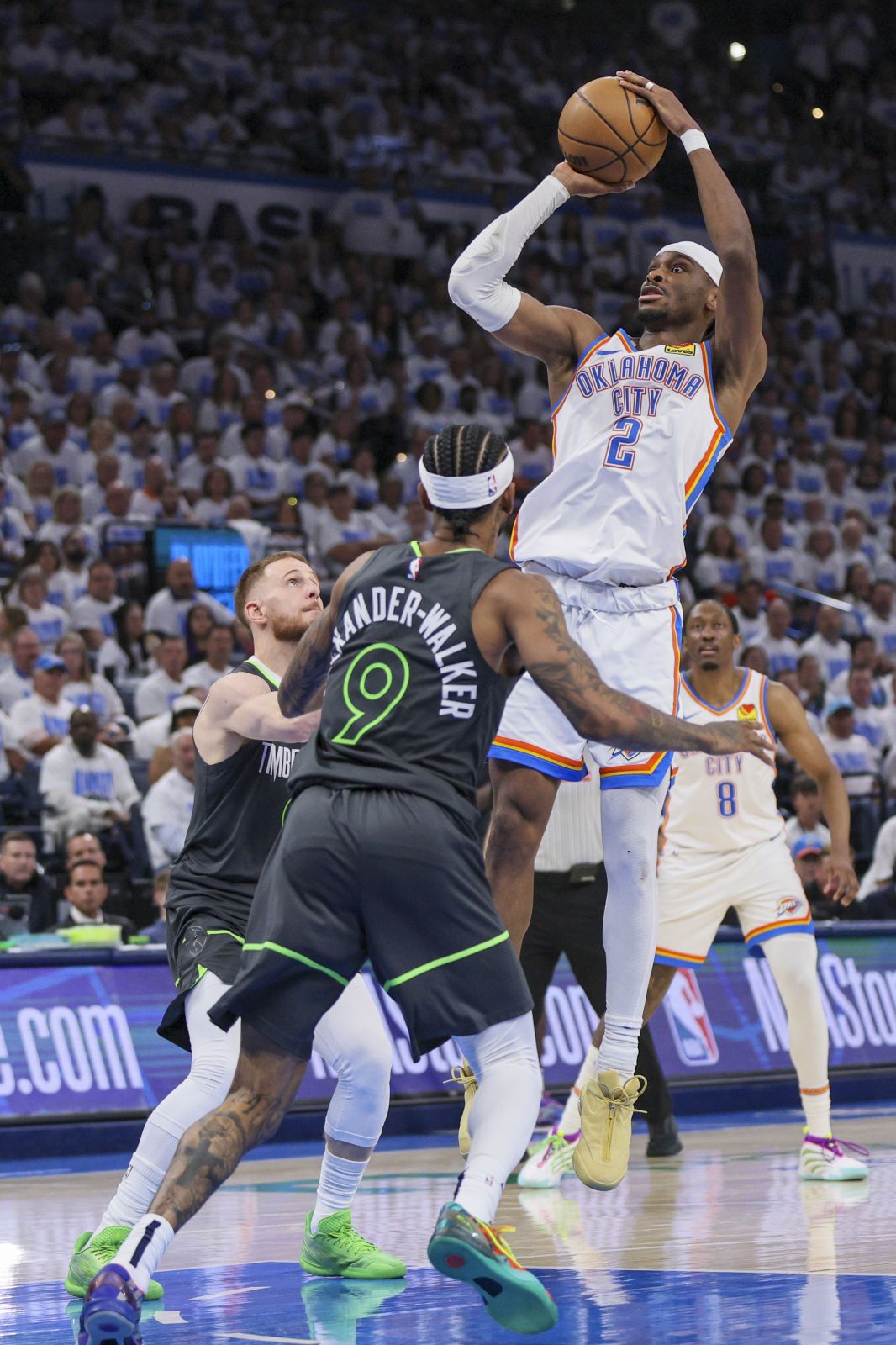 雷霆隊與灰狼隊今天於西區決賽正式交手,第一戰在聯盟第一雷霆隊主場進行,此戰開賽灰狼佔得先機,Julius Randle延續這次季後賽的火燙表現,上半場就攻下20分,灰狼上半場結束前領先雷霆。