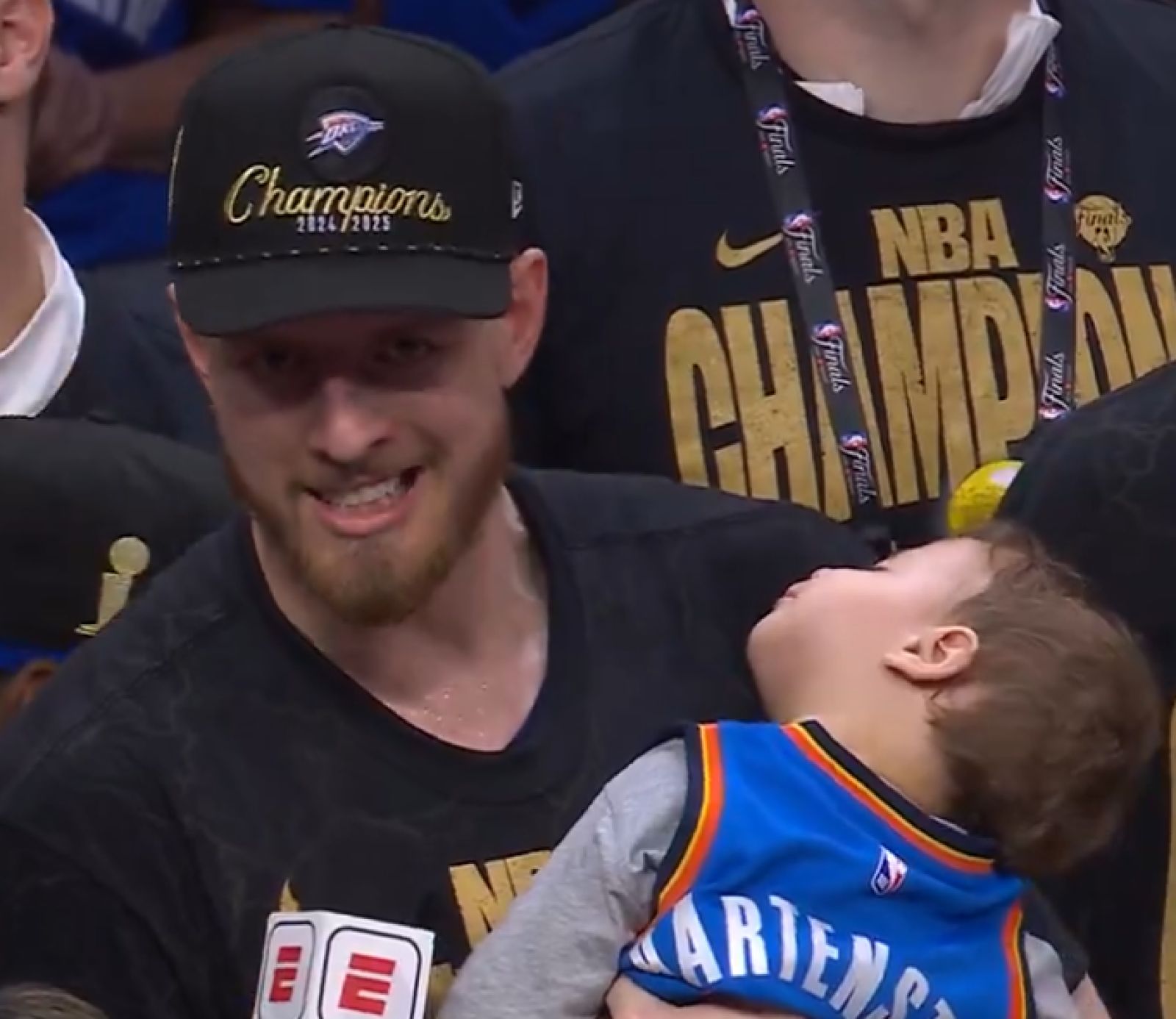 今日雷霆成功在搶七大戰擊敗溜馬奪下隊史首冠,而在休賽季加盟雷霆、首度披上雷霆球衣的Isaiah Hartenstein也一同享受這份奪冠的榮耀。