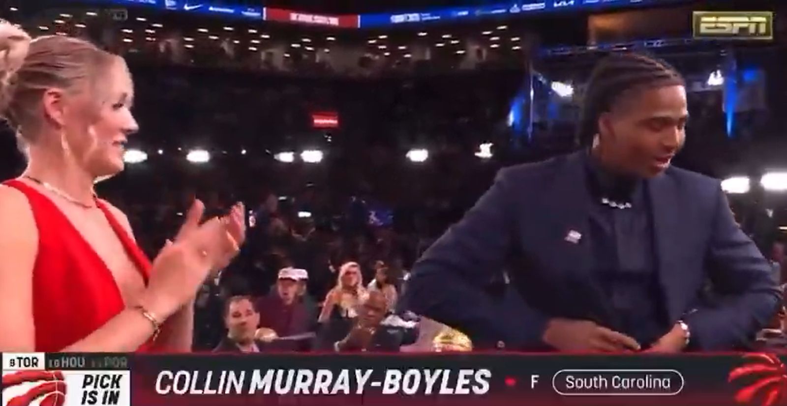 Collin Murray-Boyles在後續採訪中也分享了自己這個反應,他表示自己是太激動自己能夠進入NBA的這個舞台,並且被問及自己的護照是否準備好時,他也給出了肯定的答案。