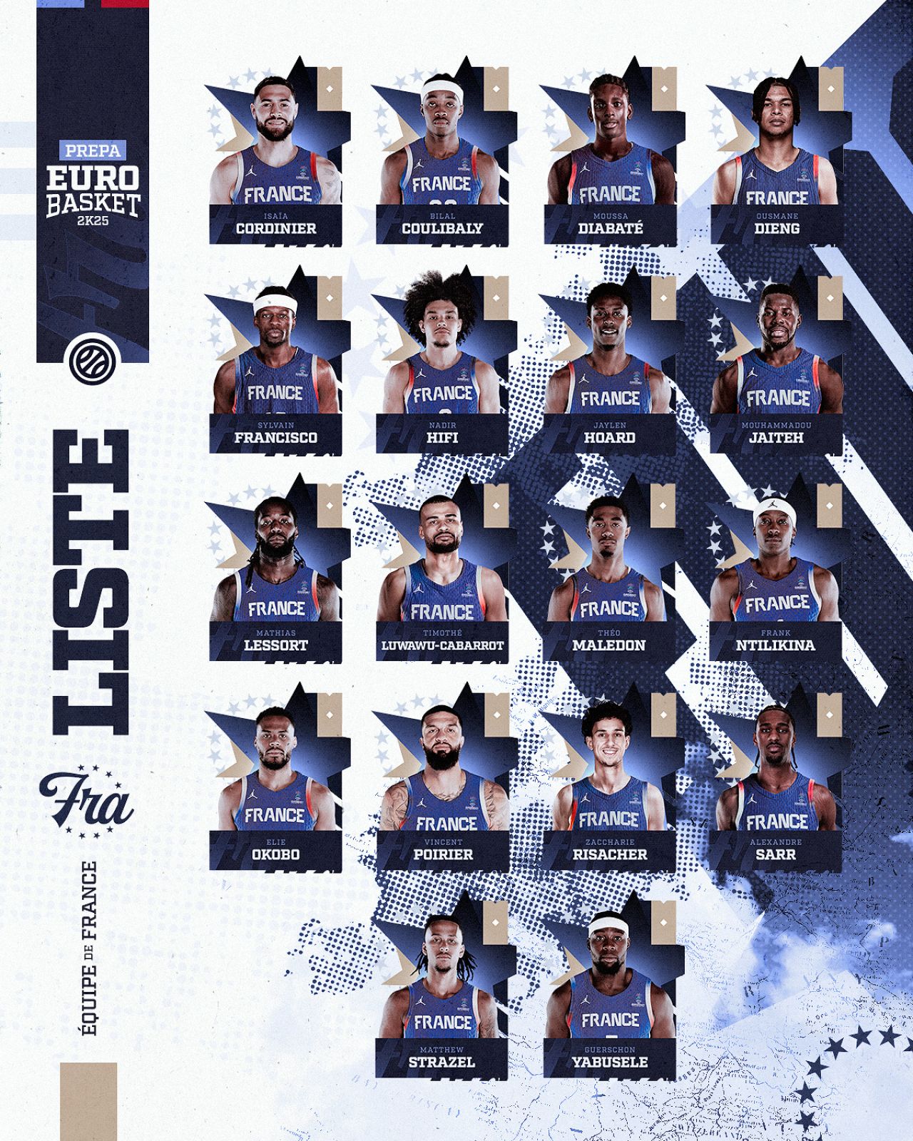La liste des Bleus convoqués par Frédéric Fauthoux pour la préparation à l'@EuroBasket