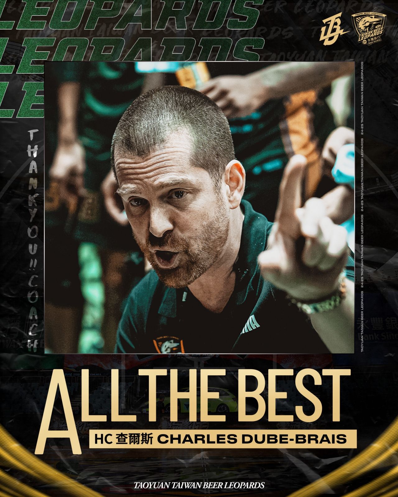 台啤永豐雲豹今(22日)宣佈,總教練查爾斯(Charles Dube-Brais)正式卸下兵符,球團由衷感謝他從2023-24季中加入以來為球隊所做的貢獻與付出。