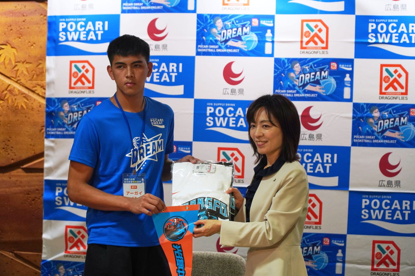 本次造訪廣島,新星隊球員們也來到了廣島縣政府進行交流。當天以現學的日文和縣政府人員們打招呼、問候,橫田美香副縣長表示:「廣島一直是個熱愛運動、充滿活力的城市,非常歡迎寶礦力新星隊前來深入體驗與交流。當然,也別忘了我們寶貴的美食與文化。」新星隊球員們也致贈了代表各自學校的紀念品給廣島縣政府,留下了難能可貴的經驗與回憶。其中南山高中的謝旻耕更是接受了廣島當地的電子媒體進行採訪,對於這樣的經驗自己也表示一開始有點緊張,但後續自己也覺得很特別、很新奇!
