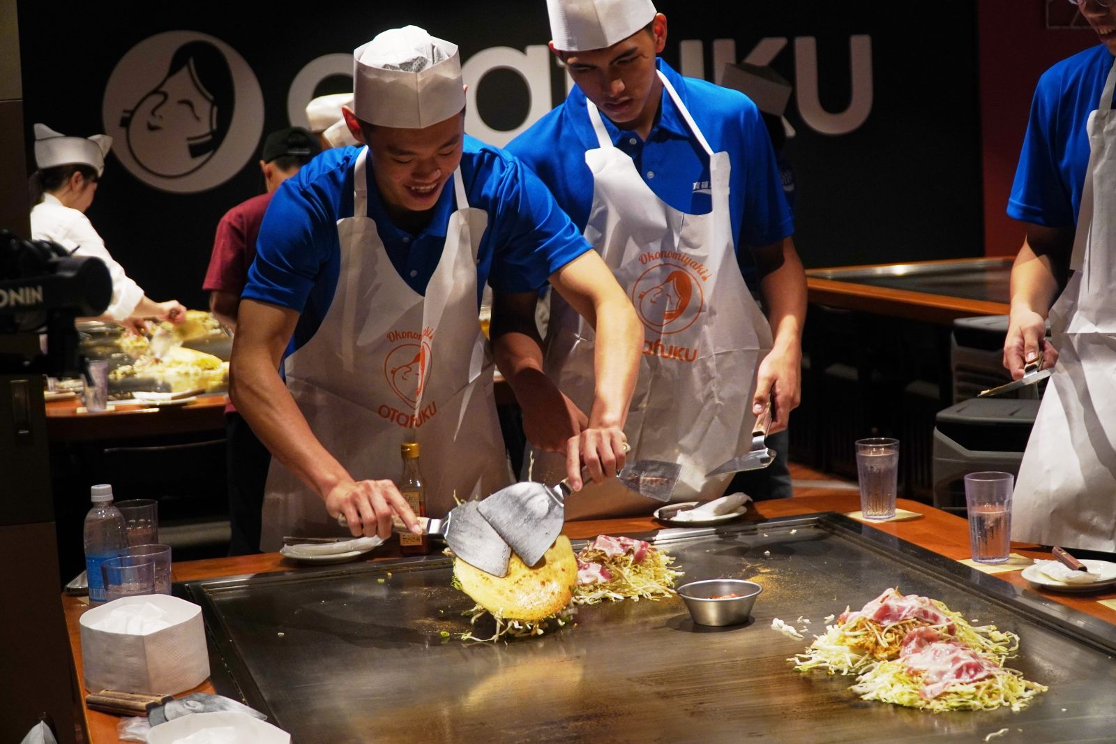 新星隊隊員們親自DIY廣島燒。圖/籃球筆記