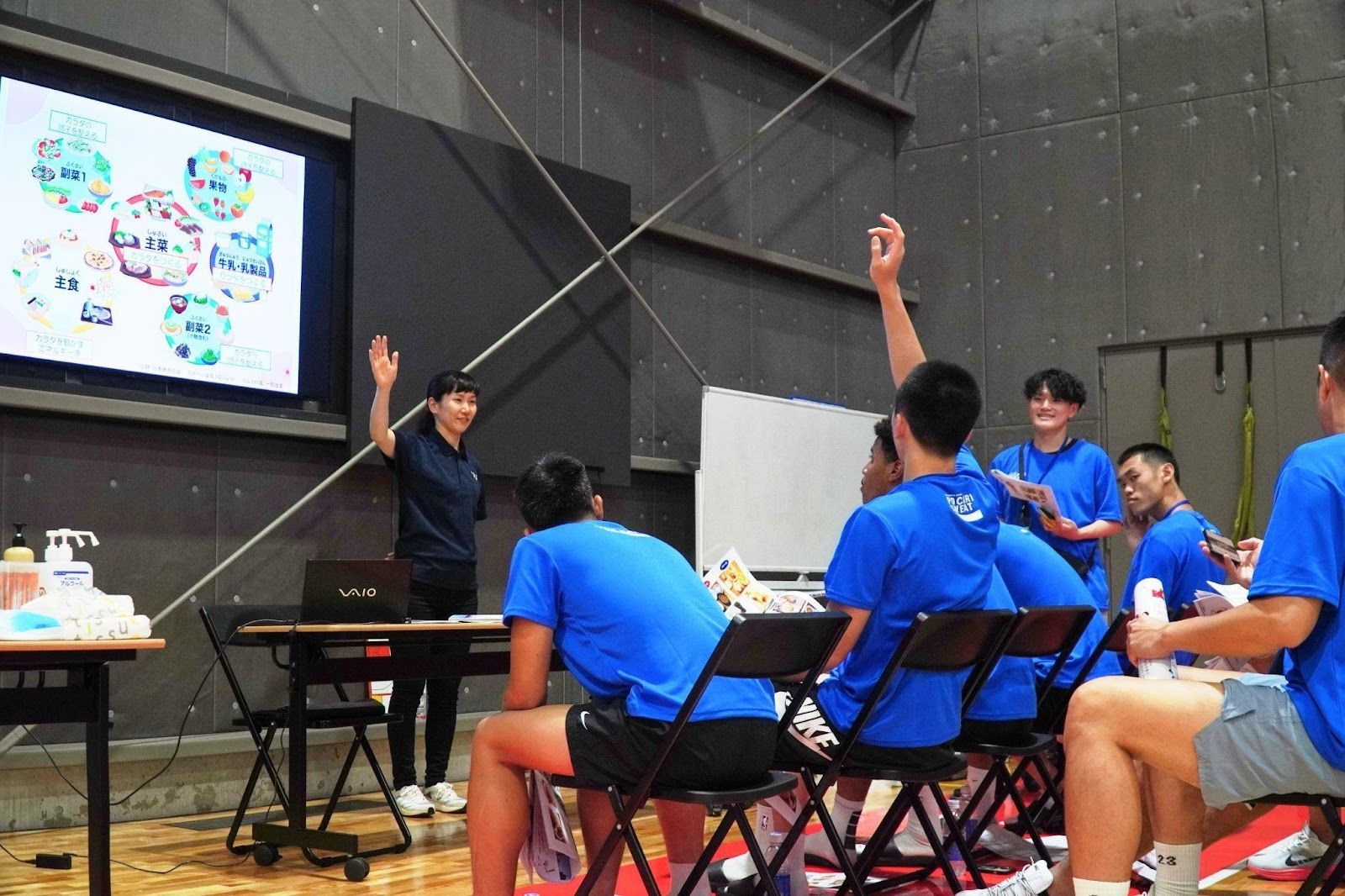 廣島經濟大學的營養師為新星隊球員們指導正確飲食,新星隊球員們認真吸收營養知識。圖/籃球筆記