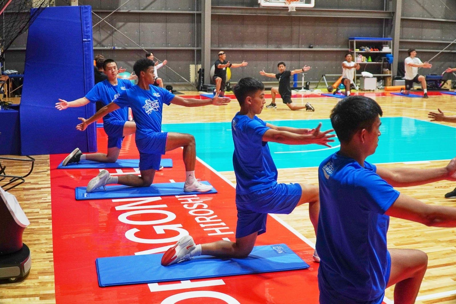接著與廣島在地職籃球隊廣島蜻蜓U15/U18青年隊交流,並在廣島蜻蜓隊總教練-朝山正悟的親自指導下,新星隊球員們首度體驗到日本職籃體系的訓練模式,無論是在一對一、基本動作,都讓新星隊球員們為之震撼。
