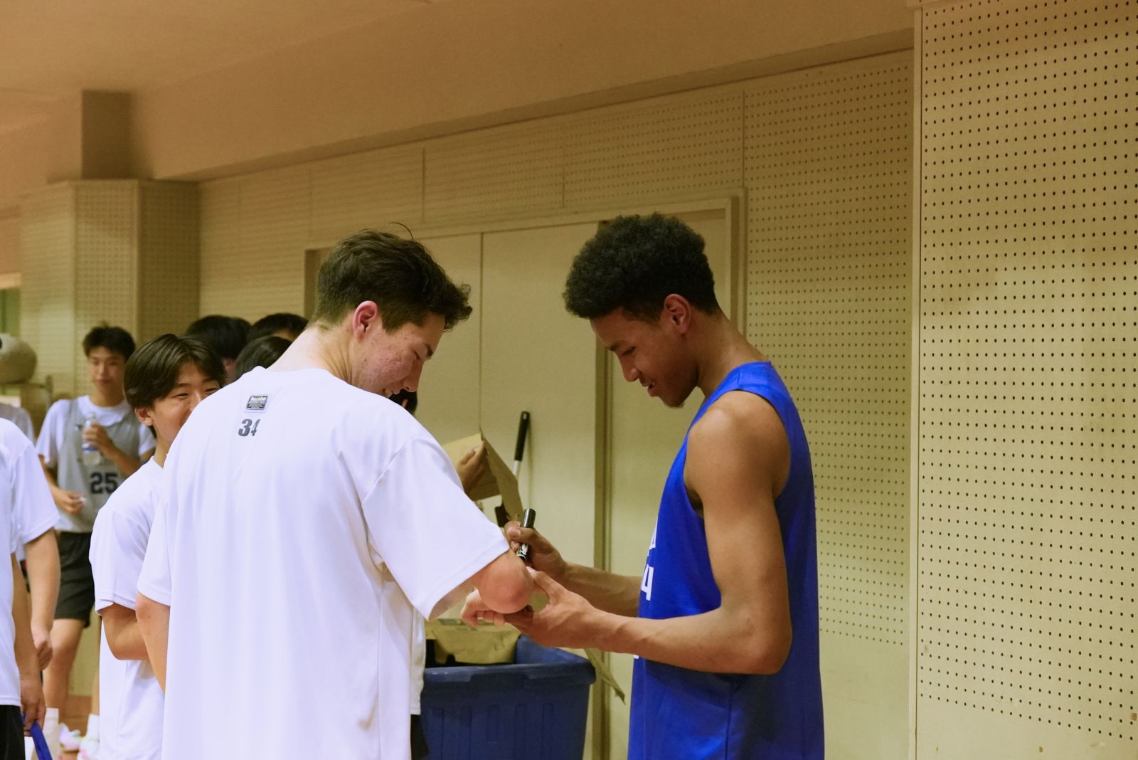 新星隊球員們從暖身、伸展的細節就體驗到日本職籃的嚴謹,跑籃熱身環節雖然簡單但絲毫都不馬虎,接著新星隊也加入廣島蜻蜓隊的戰術跑位,靠著在台灣打下扎實的戰術觀念,在跑位過程中新星隊球員們都能完成指示,精確地完成戰術,驚豔的職業球員們與教練團給予熱烈鼓掌。