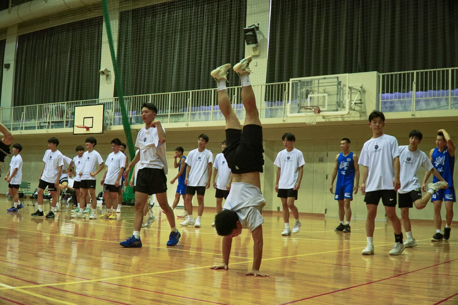 熱身環節,日本球員邊跑邊跳、邊大聲呼喊口號,數十人大聲齊喊出來的訓練模式非常新奇。那股齊喊的力量,彷彿要把整座體育館震醒,熱血沸騰。過程中,日本的每一位球員都會倒立前進,更讓在場的新星隊球員跟教練都大吃一驚,這是對於核心與協調性的很要求的動作,光復高中何鉦凱也說到:「日本訓練對於速度跟協調性要求很高。然後我們比較常打對抗,他們比較常打快攻。」