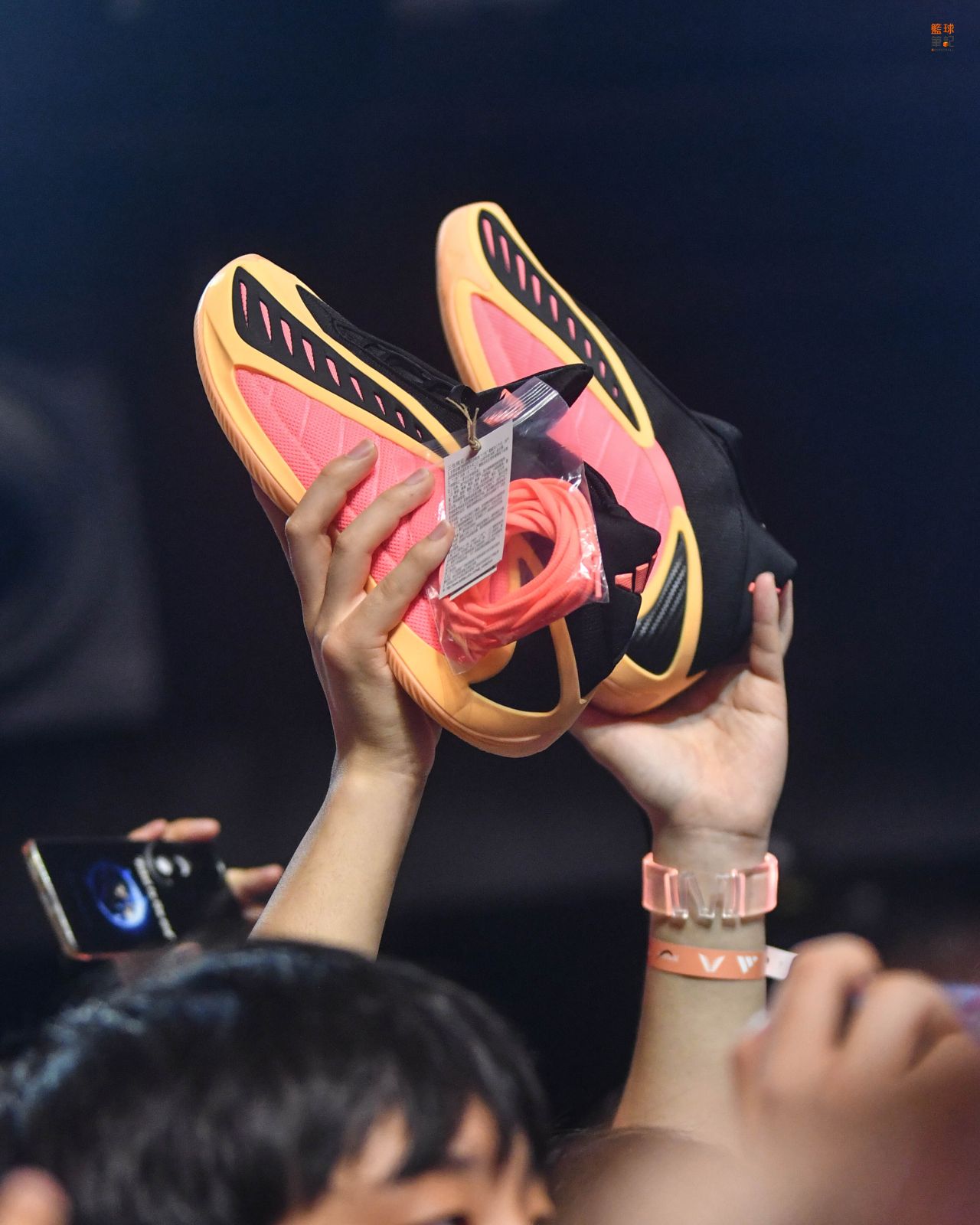 現場球迷高舉購入的adidas Anthony Edwards 2。圖/籃球筆記