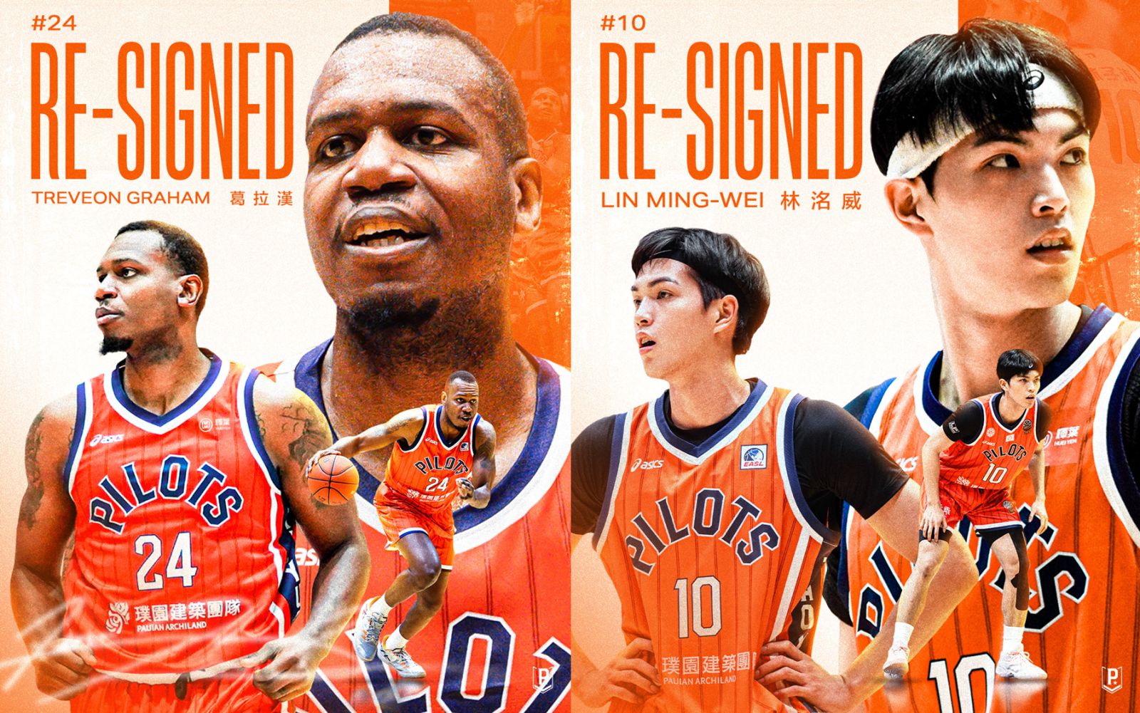 桃園璞園領航猿今(29日)宣布與洋將葛拉漢(Treveon Graham)以及本土好手林洺威(原名林子洧)續約,前者簽訂一年合約,後者簽下「2+1」複數年合約,最後一年為球隊選擇權,新賽季兩人將持續攜手飛行部隊,在新賽季振翅高飛。