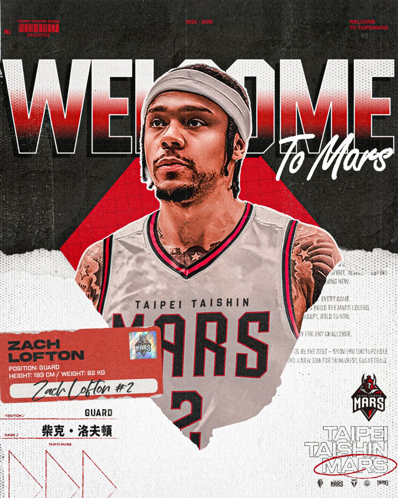 美國籍後衛洛夫頓(Zach Lofton)正式加盟臺北台新戰神。現年32歲、身高193公分的洛夫頓,於2025 FIBA WASL西亞超級聯賽中場均繳出19.8分、5.9助攻,展現頂尖進攻實力。上賽季於黎巴嫩籃球聯賽更寫下場均26.4分、7助攻、三分球命中率38%,以及單場豪取51分的精采演出,橫掃年度最佳球員、最佳防守球員、最佳外援及最佳後衛等七項殊榮。